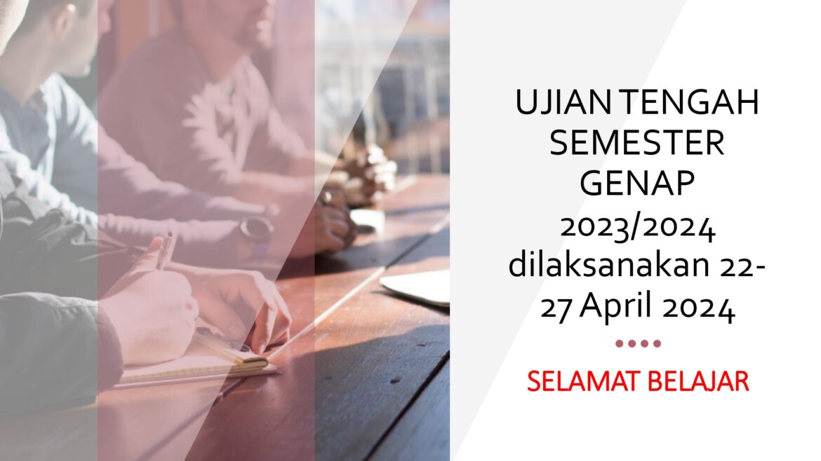 Agenda Ujian Tengah Semester Genap 2023/2024 by veron 23 April 2024 written by veron Ujian Tengah Semester Genap 2023/2024 dilaksanakan pada tanggal 22-27 April 2024. Selamat belajar. 23 April 2024 0 comments 0 FacebookTwitterPinterestLinkedinTumblrVKOdnoklassnikiRedditStumbleuponPocketSkypeViber